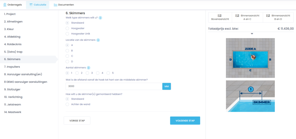 Dank der intuitiven Oberfläche und der logischen Struktur des Konfigurators kann jeder Kunde Schritt für Schritt seinen Pool gestalten. Eine übersichtliche Navigation und Layout machen den Prozess schnell und angenehm, sodass Sie Ihr Poolprojekt problemlos gestalten können.