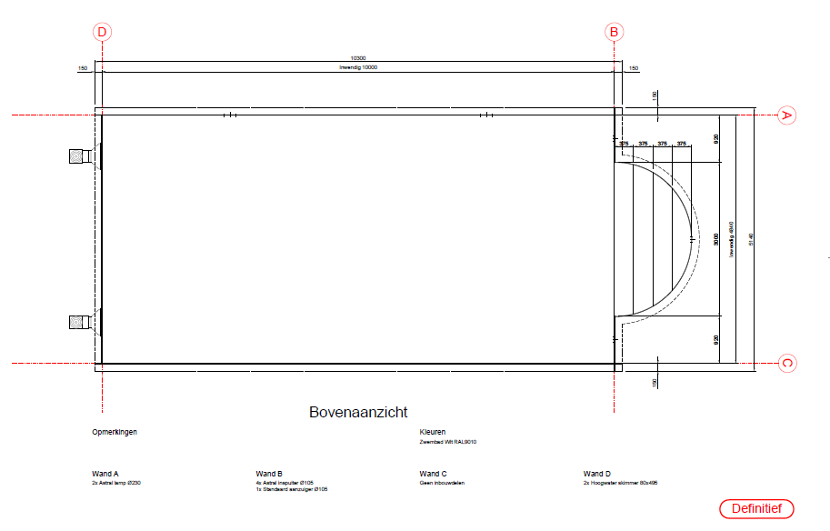 In den realen Zeichnungen werden die Anpassungsmöglichkeiten im Design übersichtlich dargestellt. Dies bietet einen großen Vorteil für den Pool-Installateur und den Kunden, da das gesamte Projekt bereits von Anfang an klar und nachvollziehbar ist. Der Pool-Profi kann unsere Kunden auf diese Weise gezielter und damit besser über die technische Umsetzbarkeit aller Pool-Ideen und Möglichkeiten beraten.